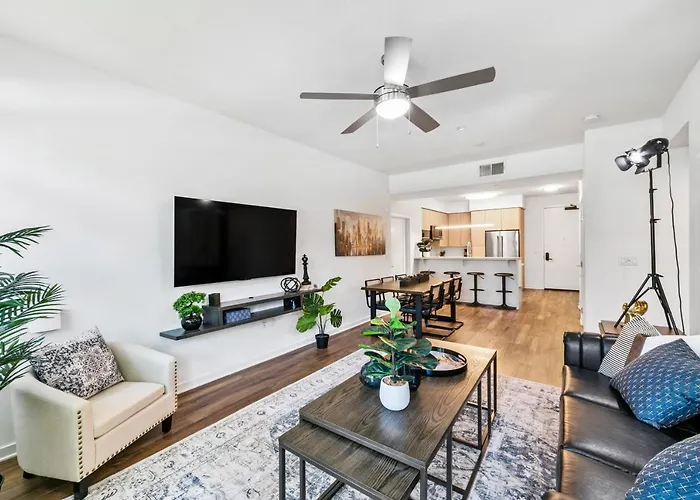 Located 19 minutes' walk from Town and Country Shopping Center, Beverly Grove Chic City Oasis 2 Bedroom Apt With Den 138 Los Angeles hotel offers access to tourist attractions throughout Los Angeles. The aparthotel also boasts a terrace, which comes with a BBQ grill.
